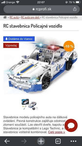 Zháňam nejakú stavebnicu policajného auta nemusí to byť len lego môže to byť aj niečo iné a určite nie lego city, chcem to pre syna a má 23 rokov čiže nejaký model skôr zháňam, keďže aktuálne ho veľmi zaujímajú práve policajné auta tak by som mu chcela kúpiť k Vianociam nejaké také auto čo by si mohol postaviť a nechať vystavené, keďže pred časom hovoril, že by také chcel ale nikde som okrem lego city a tých detských nič nenašla tak ak by mi niekto vedel niečo poradiť