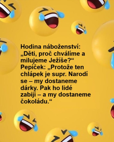 Pridu traja krali do Betlehema, klanat sa novorodeniatku. Len ho uvidia, hned jeden vykrikne: “Jezis, to je krasne dieta!”