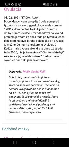 @milka1988 potrebujem sa poradit, pri doktorke som bola minulý týždeň v utorok, povedala mi, ze veľkosť folikov je 16 a 18mm, ovulku som teda mala mat okolo piatku, preco teda dnescitim na ľavej strane vaječníka bolest ? Akoby ovulacnu?
