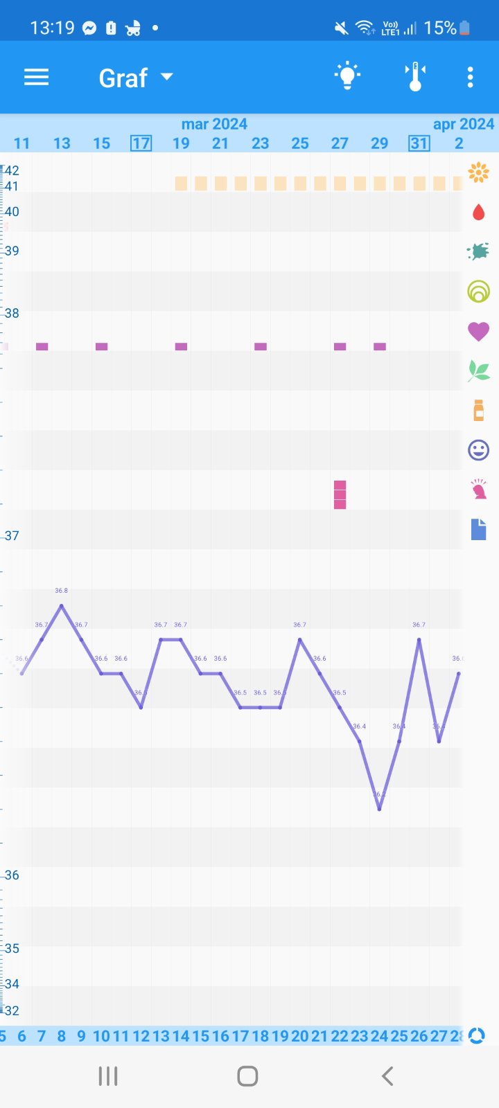 podla grafu vyzera, ze k ovulacii nedoslo, teda ide o anovulacny cyklus, je tu aj skupina skus sa pridat tam