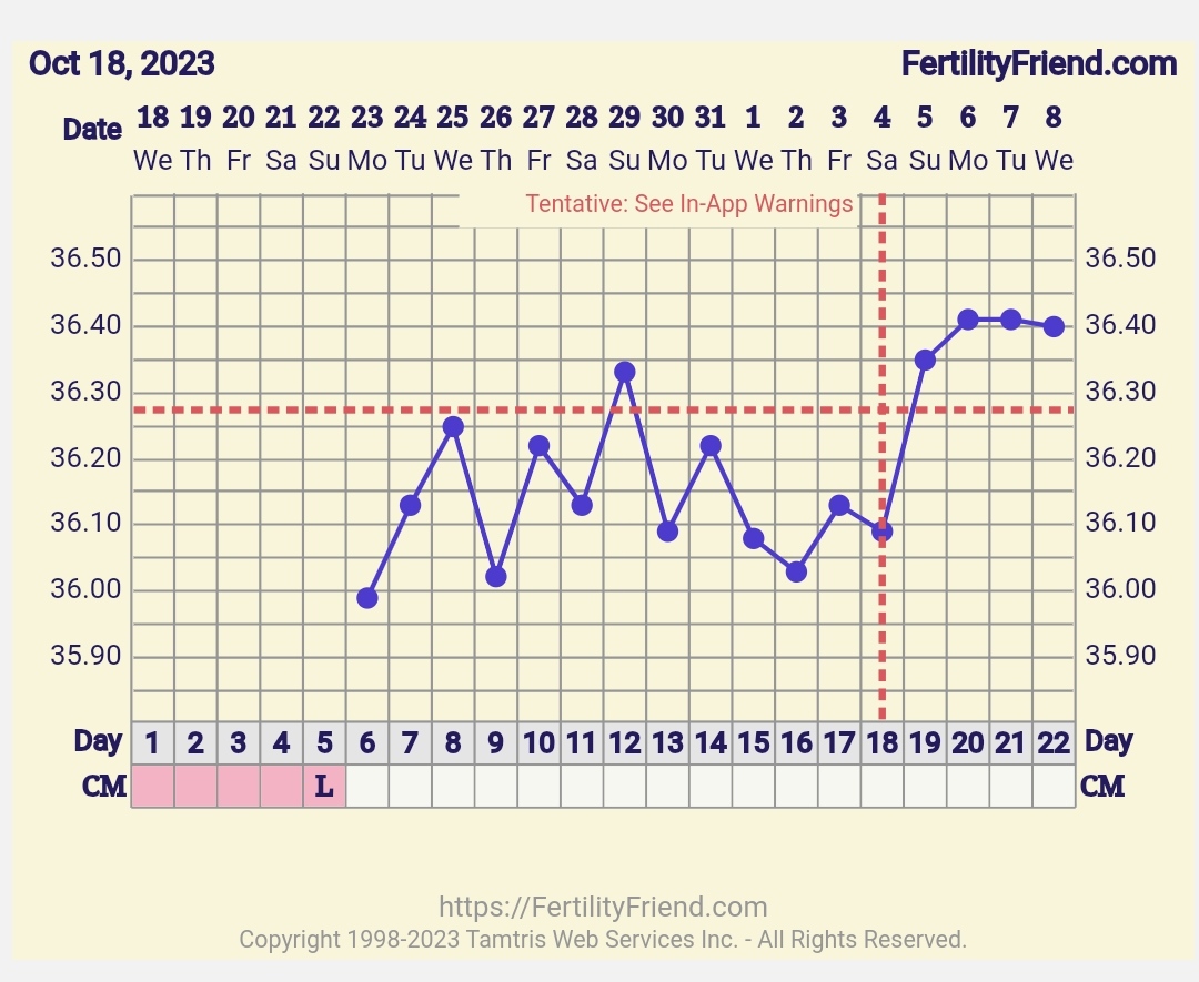 Čiara ma byt plná nie prerušovaná. Pri prerušovanej čiare graf predpokladá ovulaciu ale ešte si nie je istý. Keď bude plná vtedy si je graf istý