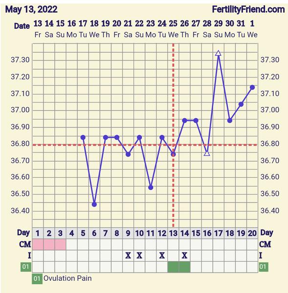 Mas tam tie sipky v grafe, je to iba tym, ze zapisujes udaje v roznych casoch, alebo aj merias v roznych casoch? Mas aj dost casto dva-tri dni identicku teplotu, akym teplomerom merias? Netreba mu vymenit baterky? Ukazuje na 2 desatinne miesta? A mas pravdu, ze lutealna faza by mala byt rovnaka kazdy mesiac. Z toho druheho grafu sa mi zda, ze O mohla byt aj 9. den. Ak merias v rovnaku dobu, da sa to tam prednastavit, a potom uz tie sipky v grafe nebudu, informacia o tom, ci je meranie v rivnaku hodinu alebo nie ovplyvnuje algoritmus, ktory vyhodnocuje, ci a kedy ovulacia prebehla.