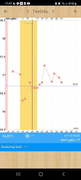Podla grafu ti lekar odpovedal spravne - tato aplikacia niekedy zle zaznaci ovulaciu ale prehlad je tam super 🤗 ovulacia nastala ak 6 predchadzajucich teplot je nizsich a potvrdi ju 3 zvysena teplota (3dpo), kt je aspon 0,2 stupna nad liniou. Vysvetlim na starom grafe - tvojich 6 nizsich teplot je od 16 dc do 21 dc a najvyssiou z tychto teplot by mala prechadzat linia - u teba je to prave 21 dc cize 36,22. Aby bola potvrdena ovulacia, tak 3 dpo by si mala mat teplotu aspon 36,42 - tvoja bola 36,49. Co znamena, ze podmienka je splnena a ovulacia prebehla.
