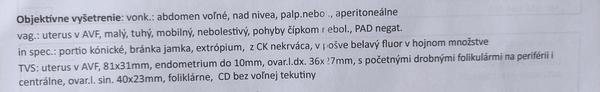 A nie, cysty na vaječníku neodstranovali.. hore máš napísané susp. PCO, suspektne polycysticke ovaria, čo sa vďakabohu nepotvrdilo, jeden vajecnik máš normálny, vyzerá zdravý, na druhom sú drobné cysty