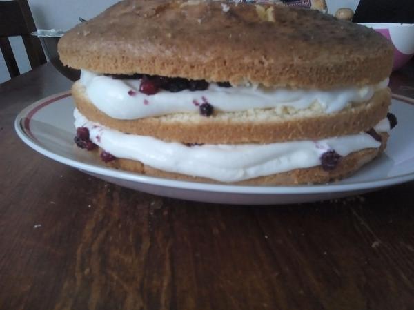 Tu je torta no len taka obyč segra berie na chatu inak robím krajšie.Vyzera ako piškotová ale je to mascarpone.