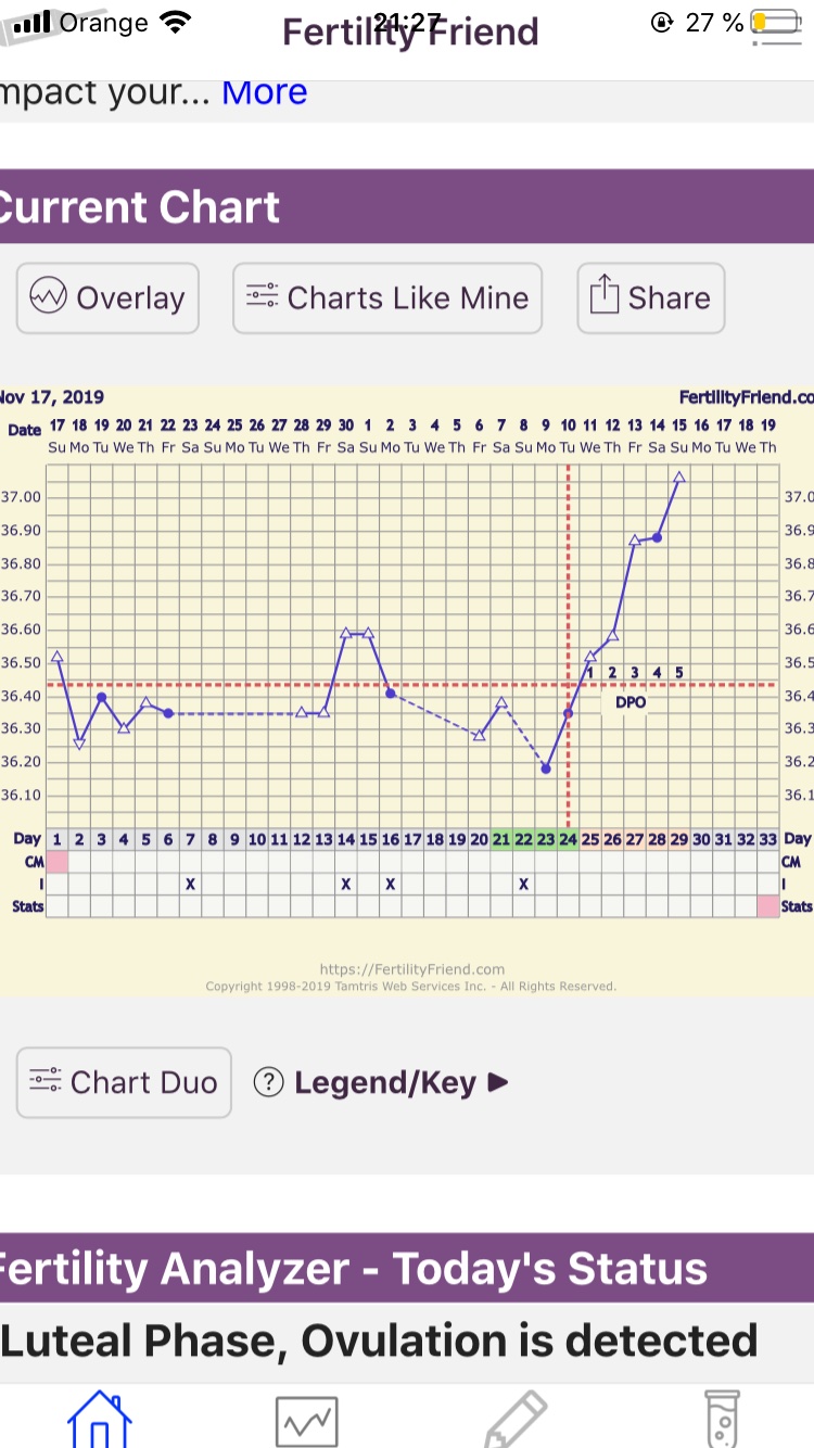 Ahojte baby, prvy mesiac si meriam teplotu, a tym som sa dozvedela ze som mala ovulaciu az na 24DC a nie v strede cyklu, cyklus mavam tak 32 dni.. nechraneny styk sme mali dva dni pred ovulacou, meriam si teplotu teraz kazdy den a krivka riadne riastie,chcem sa spytat, kvazi o 4 dni by som mala dostat menzes, kedy si teda robit test ked je taka kratka ta lutealna faza? Malo by sa teoreticky cas uhniezdit vajicko? Mate to niektora takto?