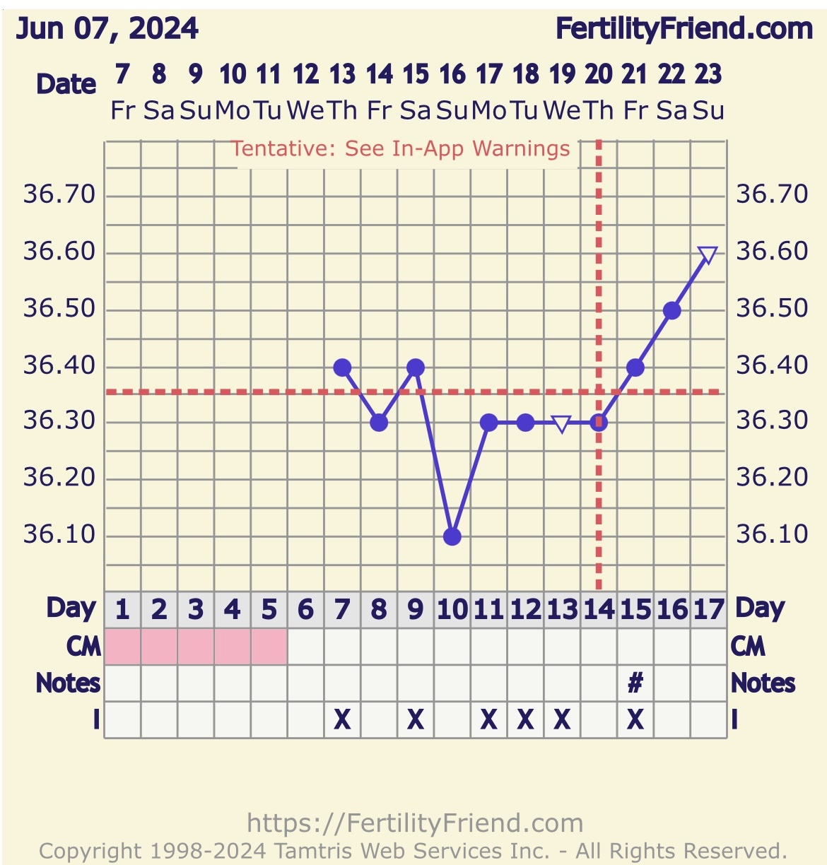 Ahojte dievčatá, som tu nová a veľmi by som poprosila o Váš názor, sledujem si ovulaciu už pár mesiacov podľa BT, vždy mi deň po ovulaci vyskočila aspoň o 0,2-0,3•C, avšak posledné dva mesiace mi stúpa deň po dni len o 0,1•C. Prikladám aj graf, pozitívny test ovulacny mi vyšiel na 13DC, avšak to nemám zaznamenané, keďže som chcela podľa teploty ako mi to ukáže. Mám dve aplikácie a jedna mi zaznačili ovulaciu na 14DC a druha na 15DC. Chcela by som sa opýtať, či to nie je zle keď mi rapídne nevyskoci teplota po ovulaci a či aj podľa vás vychádza tá ovulacia na 14DC.
