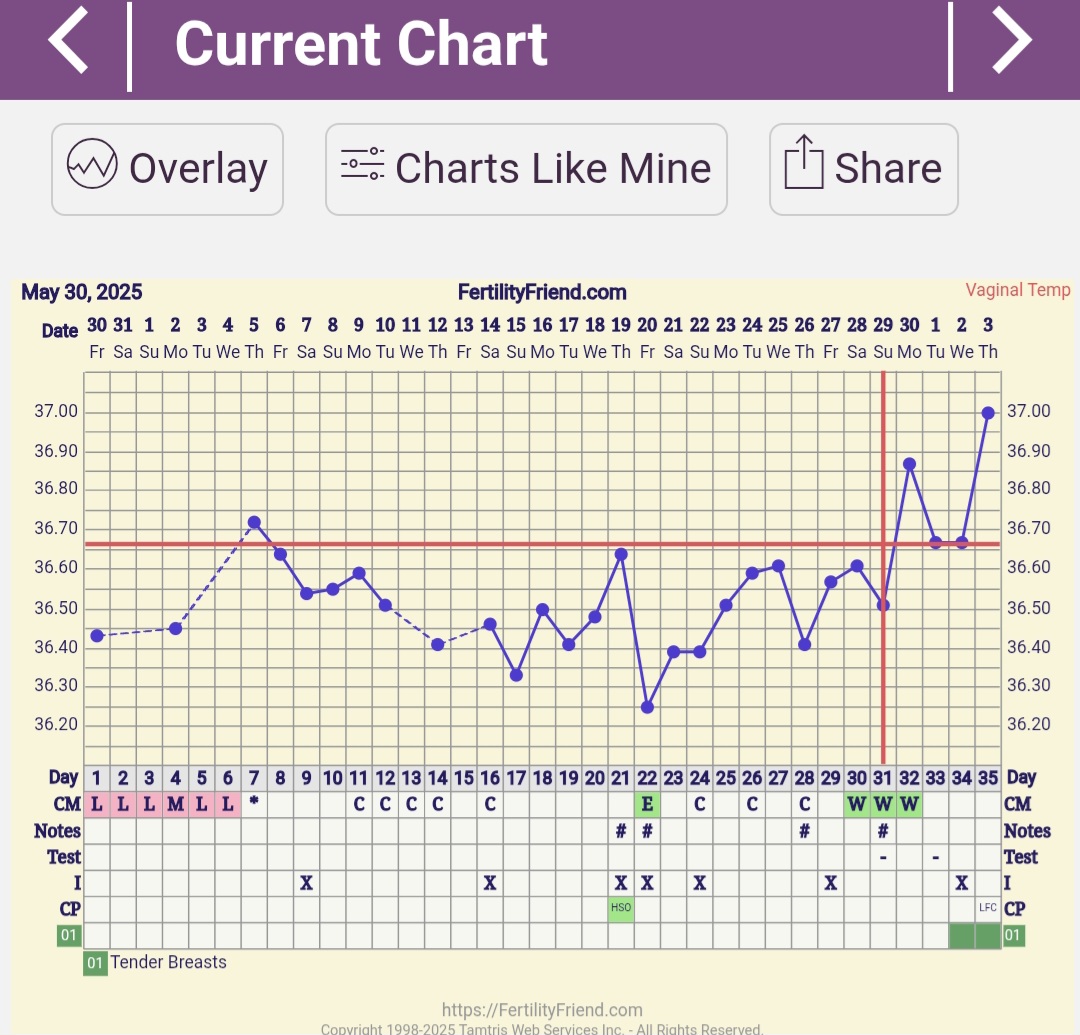 Ahojte dievcata, sledujem vas uz dlhsie a kazdej jednej drzim palce, ked vidim vase grafy. Ja mam pcos, takze som rada za kazdu jednu ovulaciu, ktora je mozno tak 2-3x do roka.... aj FF je zo mna zmätený a najprv mi vyznacil ovu na 24DC, ale potom mi to prehodil na 31DC...takze uz som povodne ocakavala aj MS v tychto dnoch, aj som robila testy, ale vyzera to teda, ze si este pockam...a kedze som myslela, ze uz mam ovu za sebou, tak sme sa samozrejme ani netrafili s manzelom 😀