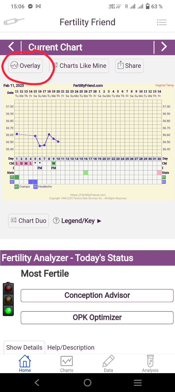 @marinecka95 je tam "tlačítko" overlay (tam si potom nastavujesš ďalej, či chceš prekrývať od začiatku cyklus, alebo na základe ovulácie a podobne) ... Ale je to v platenej verzii ... Ja som si zaplatila pred 2 rokmi, jak som začala merať a potom som deaktivovala účet, keď sa podarilo, takže cca 3,5 mesiaca som ju využila a teraz som reaktivovala účet, takže mám stále platenú ešte na 218 dní 🙂