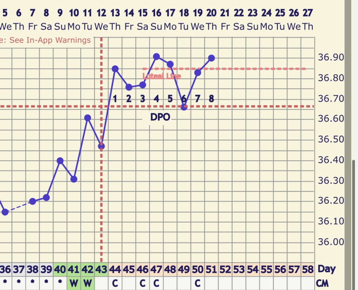 @marinecka95 pekný graf, na 5dpo som mala i ja 2x 🫣🤔 ... A že každý cyklus iný, no neviem u mňa 😅 dosť podobný až kopirujúci 🤣 uvidíme či aj ovu na 14dpo bude a aký koniec cyklu 😅 ...