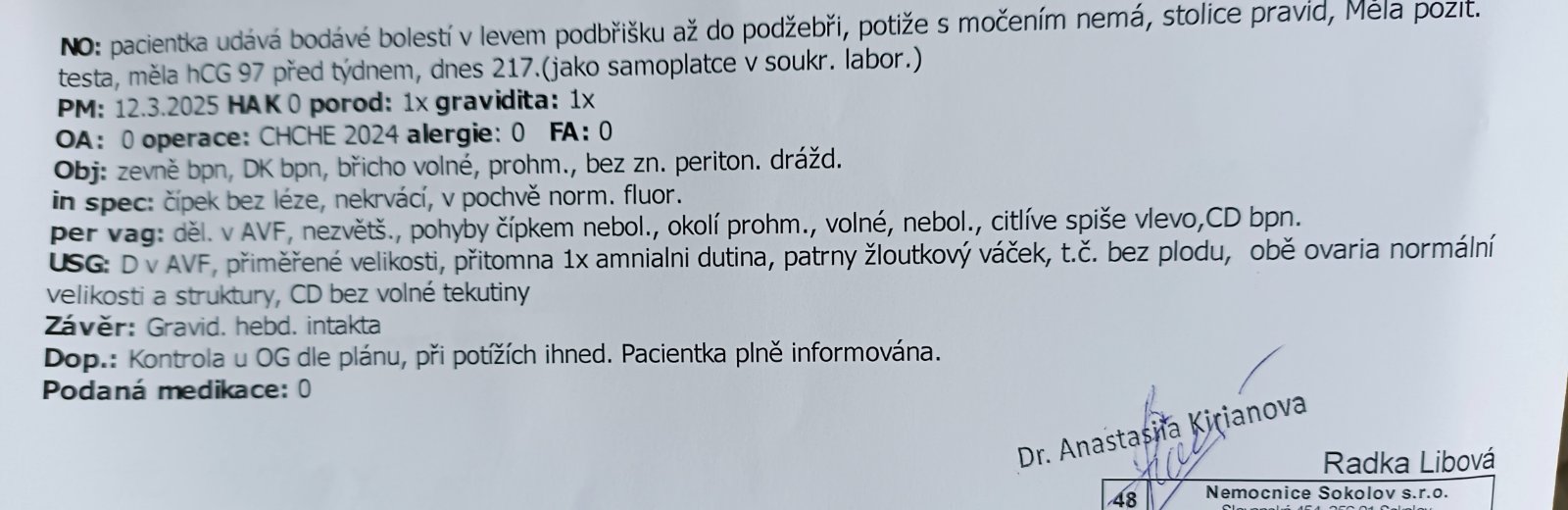 @zuzik5891 pozerala všetko na pohotovosti, ale inde ako v maternici nič nevidela .. je ale otázka či by bola pseudodutinka so žltkovým vačkom, to si nemyslím, aj keď zatiaľ iba malým ... Ja nijak nekrvácam, ani náznak, iba mám občas bolesti vľavo, pod rebrom, ale to tak nejak som mala aj pri dcérke, keď si tak zaspomínam, nakoniec som aj placentu mala vľavo v tých miestach umiestnenú potom ... Ale hej, určite keby sa to zhoršilo, idem na pohotovosť znovu 🙂