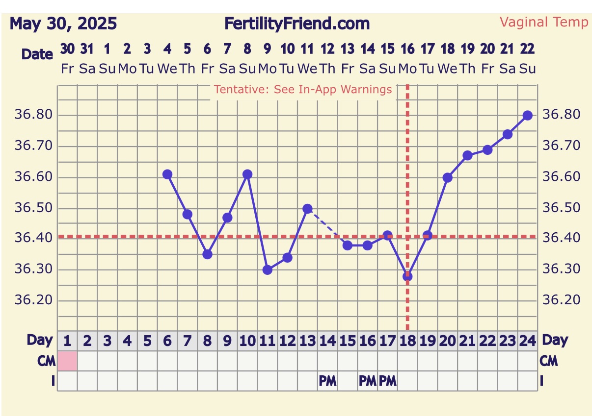 @zdsa graf máš pekný...tiež mi vo vydarenom cykle cca 5 dní po ovulke začala BT klesať...a potom vystúpila...keď sa mi to stalo prvý krát tak som myslela že mi dôjde ms skôr...potom prišlo prekvapko s pozitívnym testom...keď sa mi to stalo druhý krát,už som vedela že to bude tehotenstvo a že to bude ok...držím silno všetkých dvadsať 🫶nech je to aj u teba dobré znamenie...