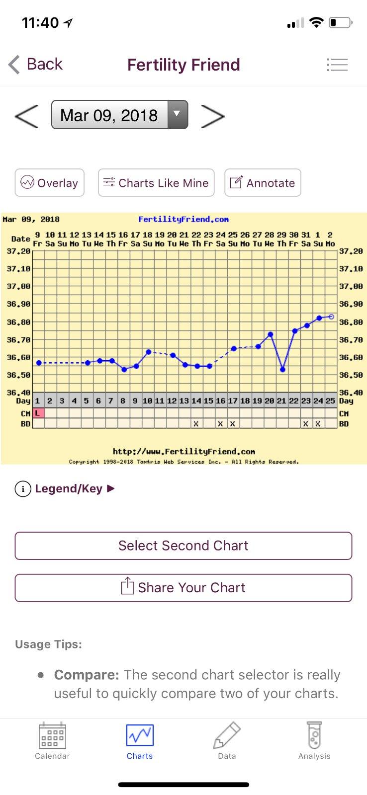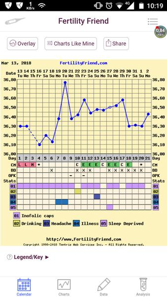 Ahojte baby, som v tejto téme úplne nová. Snažíme sa s manželom o dieťaťko už celkom dosť dlhú dobu, ale až tento mesiac som si začala merať teplotu, no aj to nie vždy. Nahádzala som to dnes do tejto apky a môj graf vyzerá takto ako na foto. Potrebujem od vás radu. Na 14 deň cyklu čo bolo 22.3 som bola na folikulometrii a mala som folikul o veľkosťi 20 mm. Bol mi teda pichnutý aj pregnyl. Večer sme sa manželom snažili. Na druhý deň sme to bohužiaľ asi zo stresu nezvládli, tem sme sa opäť snažili až na tretí deň teda toho 24.3 a tiež 25.3. Práve cez tieto dva dni ma brucho aj veľmi bolelo. Brala som clostyl a od toho 24.3 beriem aj utrogestan. Robila som si dnes clearblue test digital bohužiaľ vyšiel negatívny. Myslíte, že ešte mohlo byť zavčasu na test?? Mrchu by som mala dostať vo štvrtok. Mám PCO, moje predošlé cykly boli veľmi dlhé, tento mám gyndoškou odsledovaný.