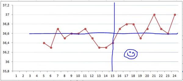 alebo ak by sme tu vodorovnu dali na 36,6, tak 4dpo by bolo pod ciarou, co nemusi vadit, nie? 😕
