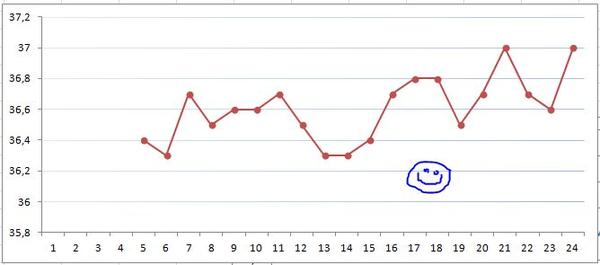 @monika11m teplota je individuálna, ja som už mala aj 37,3 a nič z toho nebola a niekomu stačí aj 36,8 a je to tam 🙂 záleží na tom, aké máš teploty pred ovuláciou a aké po ovulácii, píšeš, že si dnes 24 dc, koľko si dpo? prípadne napíš všetky svoje namerané teploty s dátumami a @paskolinka vie nakresliť krásny graf, že? aj s kyslím smajlíkom 😀
