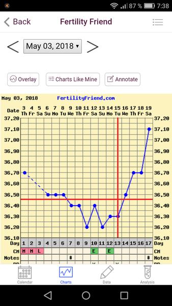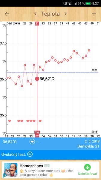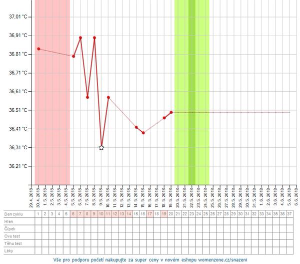 Ja zatiaľ takýto mám graf kde meriam kde pozabudnem ale budem sa snažiť merať denne a cykly mám nastavené po starom na 37dc,čo tento raz neplatí po kyrete môže trvať 5-6týždňov podľa gyn.tak to potom nakoniec ked sa ms spustí prestavím tento graf. Ale ďalší cyklus by už mal byť iný,som zvedavá koľko dc budem mať po tomto cykle či sa zmení alebo ostane 32-37dc ako som mávala,keďže vaječníky sa mi striedajú a ejden má kratšie cykly a druhý dlhšie.
