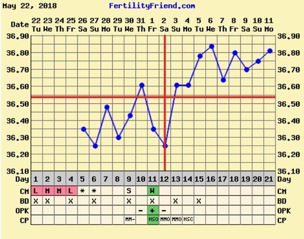 Ahojky, podľa mňa ti to tu vyznačilo aj na základe hlienu a pozitívneho ovu testu, ale podľa teplôt by som to aj ja rátala asi na 14dc. Ale riad sa tymto teraz, ak si podla tohto grafu zvyknuta, aj pokles bol 12dc, co sedi zasa na ovu.... Test môžeš skúsiť, dnes ak chces , podľa grafu si 9dpo, to už môže niečo malo byť, ale aj nemusí. Držím palce 😉😊