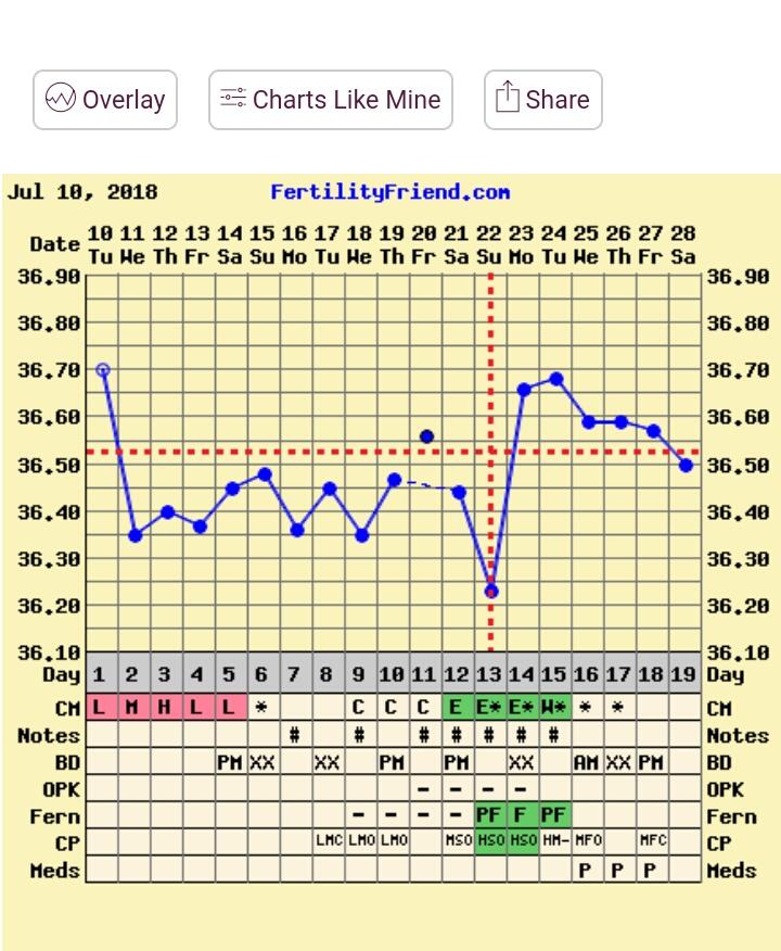 Aj podľa mňa by to skôr sedelo na 20 DC, hoc nie sú dodržané pravidlá pri tom vyznačeni ovulky..3 vyššie teploty, po 6 nižších. Síce na 21. ti vyskočila teplota, ale ďalšie 2, ktoré mali byť nad najvyššou teplotou do ovulky , čiže 16 deň, už boli nižšie. Takže neviem.