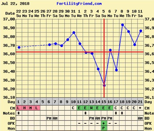 najskôr výkyvy, teraz rovinka...podľa teorie, teda mohlo byť uhniezdovanie 5.8, pri poklese na grafe a 6.8 mi už vyšiel dúúšik.. pekne to sedíí...síce isté bolesti som cítila aj pri prvom poklese 1-2.8.. dokonca 2.8 mi trošku vytekalo kolostrum z prsníkov, skôr ten deň považujem za uhniezďovací..niekedy mám dojem, že plôdik cítim na dvoch miestach.. ale tak to už veľmi špekulujem🙂 (moja mama bola z dvojičiek)