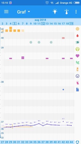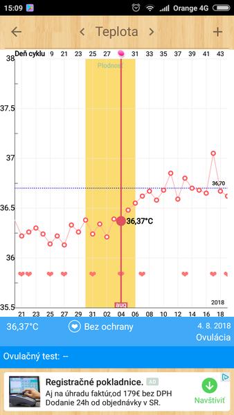 Ahojte prosim o radu co si myslite o mojom grafe? 15.8. Som bola u svojej gynekologičky a povedala mi že mám krásny veľký folikul ktorý podľa nej uz praskne v ten deň som mala podbruska bolesti citila som ze dnes bude ovulacia lebo aj teplotu v daní deň mám vždy nizku nasvedčuje aj teplota od 16. Az do dnes ratala som ze uz mi vyznaci ovulku lebo mám vysoke teploty a nic aj dnes 36,98 co su presne u mna teploty po ovulke je to zvlastne stretli ste sa niektora s tymto ďakujem za každú radu 🙂