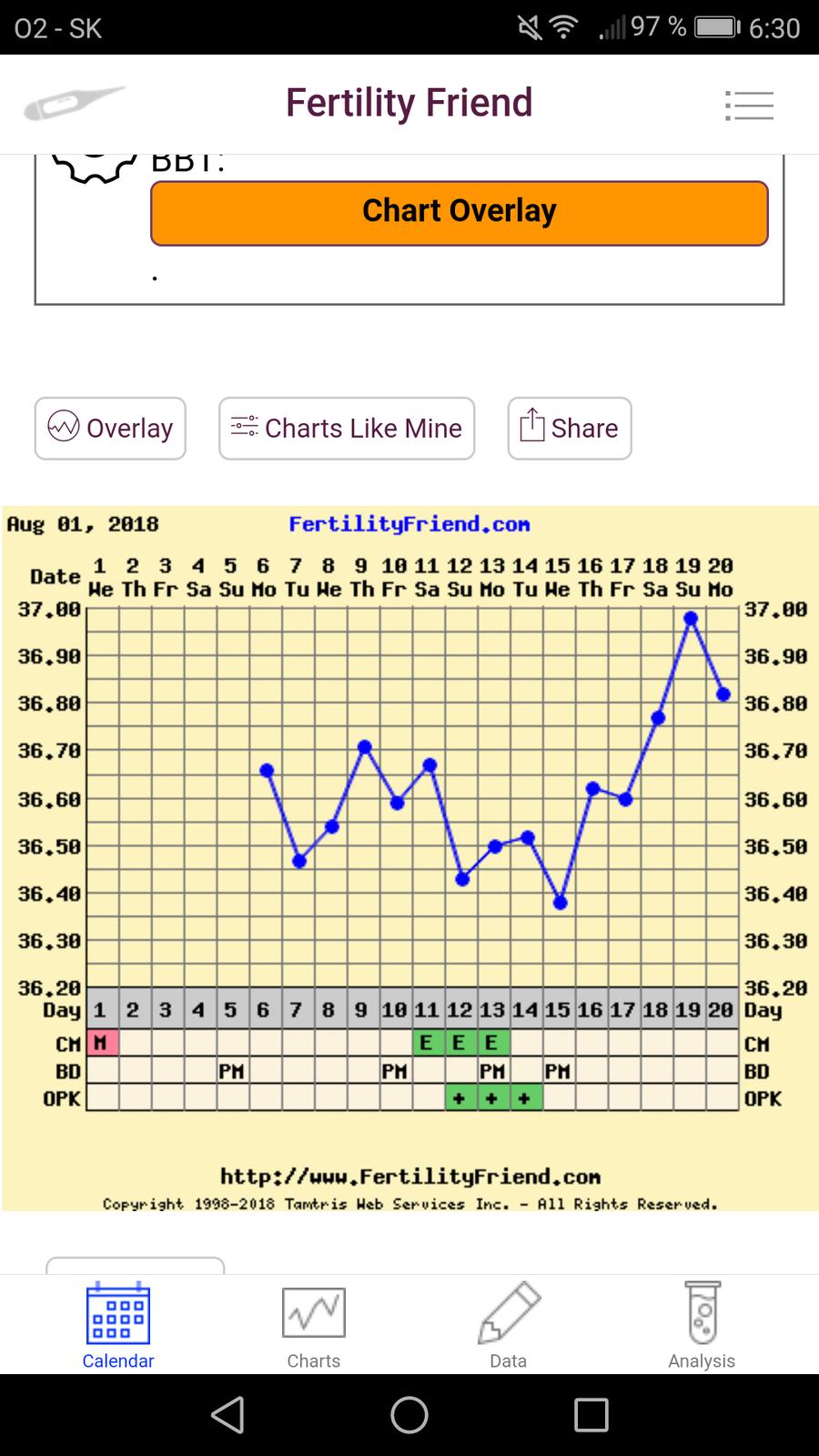@monika20111990 teoreticky ak zajtra budes mat teplotu vyššiu ako 36.65 tak ovulka vychadza na 17dc. Ff az po 3 dňoch vyšších teplot ako v 6 predchádzajúcich dňoch vyznačuje ovulu.