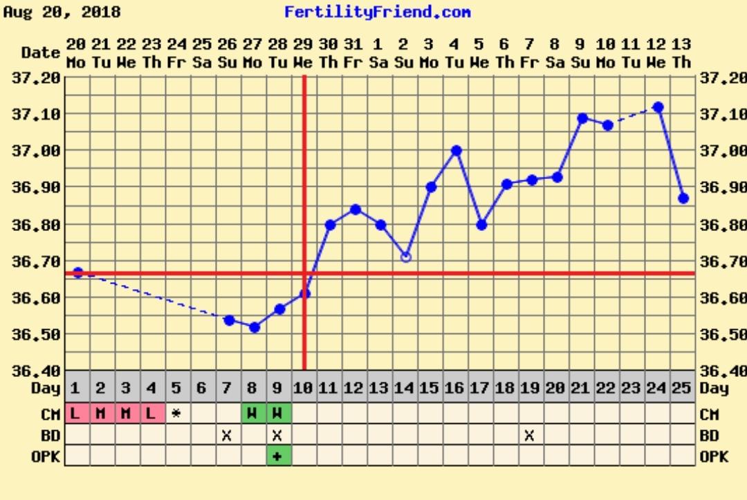 @zuzik5891 no veru, ja som iba poobede testovala, moznoze ten vrchol by bol iny cas, ale uz nebudem testovat, mi to nevyhovuje ze nemozem pit vodu 2 hod 😁 inac dnes mam trochu ruzovkasty vytok, podla grafu asi 2 dpo, neviem alebo 1 dpo uvidim ako vyznaci FF podla zajtrajsej teploty