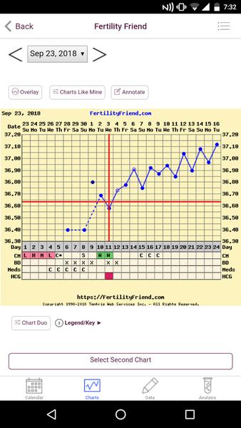 Ahojte dievcata, prosim neporadite mi s mojim grafom? Meriam prvy mesiac, pretoze mi od augusta prestal chodit menzes, v septembri iba na vyvolavacku. Teraz 9.10.2018 som mala pozitivny ovu test ale graf nevyzera na to, ze ovulacia prebehla,ze? Menzes by mal prist za 9 dni, cyklus by som mala mat 31 (predtym vzdy 31). Dakujem Vam.