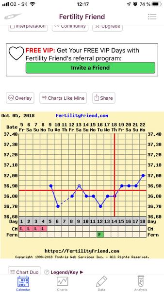 @dominika_sk lebo graf si nie je isty, preto prerusovana 🙂, ale teplota ti ide hore cize by to aj sedelo...ono je dobre zapisovat hlien a krcok a tym, ze tebe sa neda odsledovat kvoli nechtom 😅, tak preto si graf nie je isty 🙂...ale asi si 4 DPO ako ja 🙂