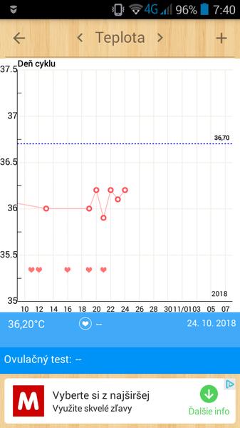 Ach jaj, čo mi to ta teplota robí, prečo nemohla potvrdit ovulku. Teraz musime riešiť či dnes alebo zajta sa stačí s mužíkom stretnút. Idealne by bolo dnes a zajta ale tiez to nie je sranda kazdy den jazdit 600km, byt cely deň v praci a potom podať výkon. 🤓 Možnože stiham dokonca aj folikulometriu vo štvrtok 😀
