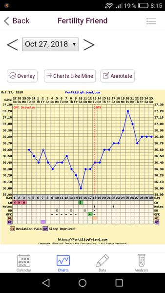 Povedala by som, ze dost nestandardny graf na mna... Stale mi to prehadzuje ovulu o dva dni hore dole (12 a 14 dc) , uz nepomoze ani ked zadam hlien... Viem ze urcite nebola skor ako 19.11 (13dc) podla sona a opk bol pozitivny az na 12dc... Asi ju nastavim znova rucne... Inac sa mi vidumia teploty nejake nizke....