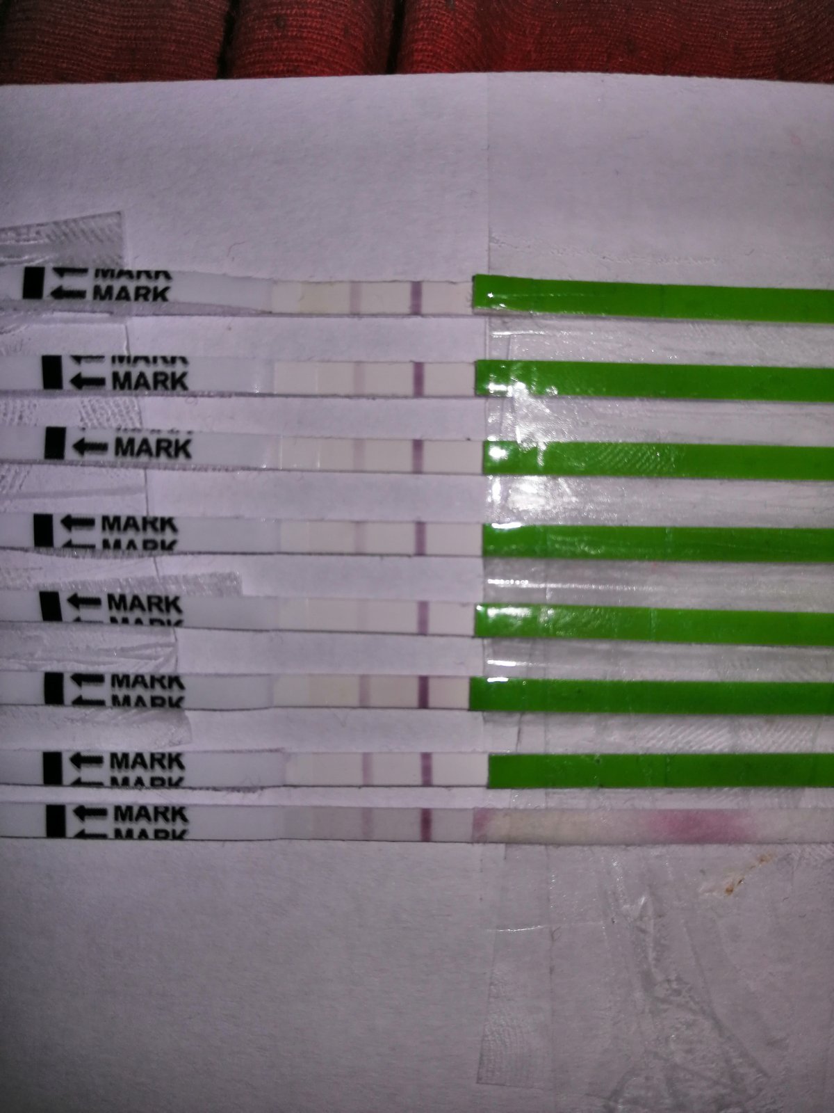 Och ja tak dnes ľutujem ten zabudnutý test... Myslíte, že na 14DPO by mi mohlo nieco ukázať aj počas dna,? Či testovať len z ranného? Zajtra má prísť MS a vôbec necítim žeby prichádzala. Žiadne výrazné PMS ako inokedy... Trošku ma akoby pália bradavky a pobolieva v podbrusku, raz na pravej strane potom na ľavej... Úplne mi vŕta dnes v hlave, že ako by vyšiel test. Tu na dedine dnes nemám možnosť žiaden kúpiť... Och... Nervy moje... 😂😂😂