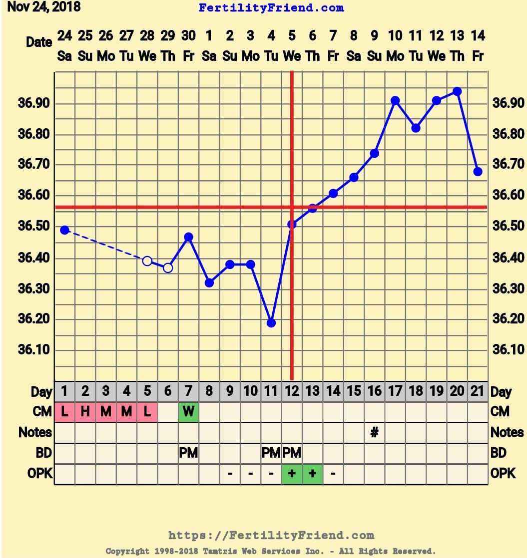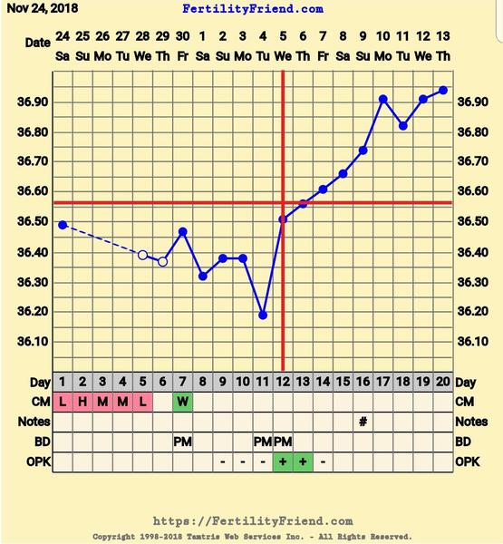 mať vôbec čo ukázať ...či to nebude anovulak.. A tak vám chcem ukázať môj graf. Som 29DC...teda ak sa to dá nazvať cyklus. Čakám na prvú MS po spontánnom potrate v 12tt... Ale tak myslela som si, že ovulka nebude, a že sa proste len rozkrvacam, lebo moja lekárka mi povedala na kontrole, že mám ešte vysokú sliznicu a to odkrvaca pri najbližšej MS. Ale mám pocit, že ovulka bola....uvidíme zajtra podľa teploty, či sa to potvrdí ... A či vôbec dostanem MS. 😉 to by bol zázrak, keby bola ovulka a nedostala by som MS. 🙂