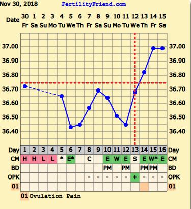 Ahojte žienky, už dlhšiu dobu vás tu sledujem, a tak som sa rozhodla medzi vás "votrieť". Už pár rôčkov si meriam bt (snaha o bábätko) a doteraz som bola v tom, že keď mi začnú silné ovulačné bolesti (vyraziť bok), tak práve prebieha ovulácia. Posledných cca 12 mesiacov mávam tieto silné bolesti až po zvýšenej bt, a to som si myslela, že v interpretácii mojich grafov som profík. Podľa priloženého grafu bt, by ste mi vedeli poradiť, kedy som mala ovuláciu? Ešte taká poznámočka, že 13 DC som mala okolo 13,00 hod. takmer pozitívny ovu test a večer o 19,00 bol už mega pozitívny (testovacia čiarka silnejšia než kontrolná). Na druhý deň - 14DC bol už negatívny (14,30 hod.) a večer okolo 18,00 som mala ukrutné ovu bolesti, kedy mám pocit, že mi to roztrhá vaječník.