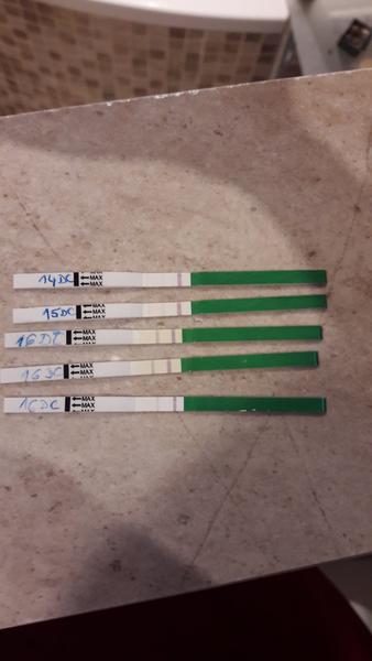 Dievčatá ovulka mi uz prebehla ze? Včera som mala 16dc na obed prvy silný test o 2 hod.tiez silny este a potom.vecer slabla. Máme sa este dnes snazit?
