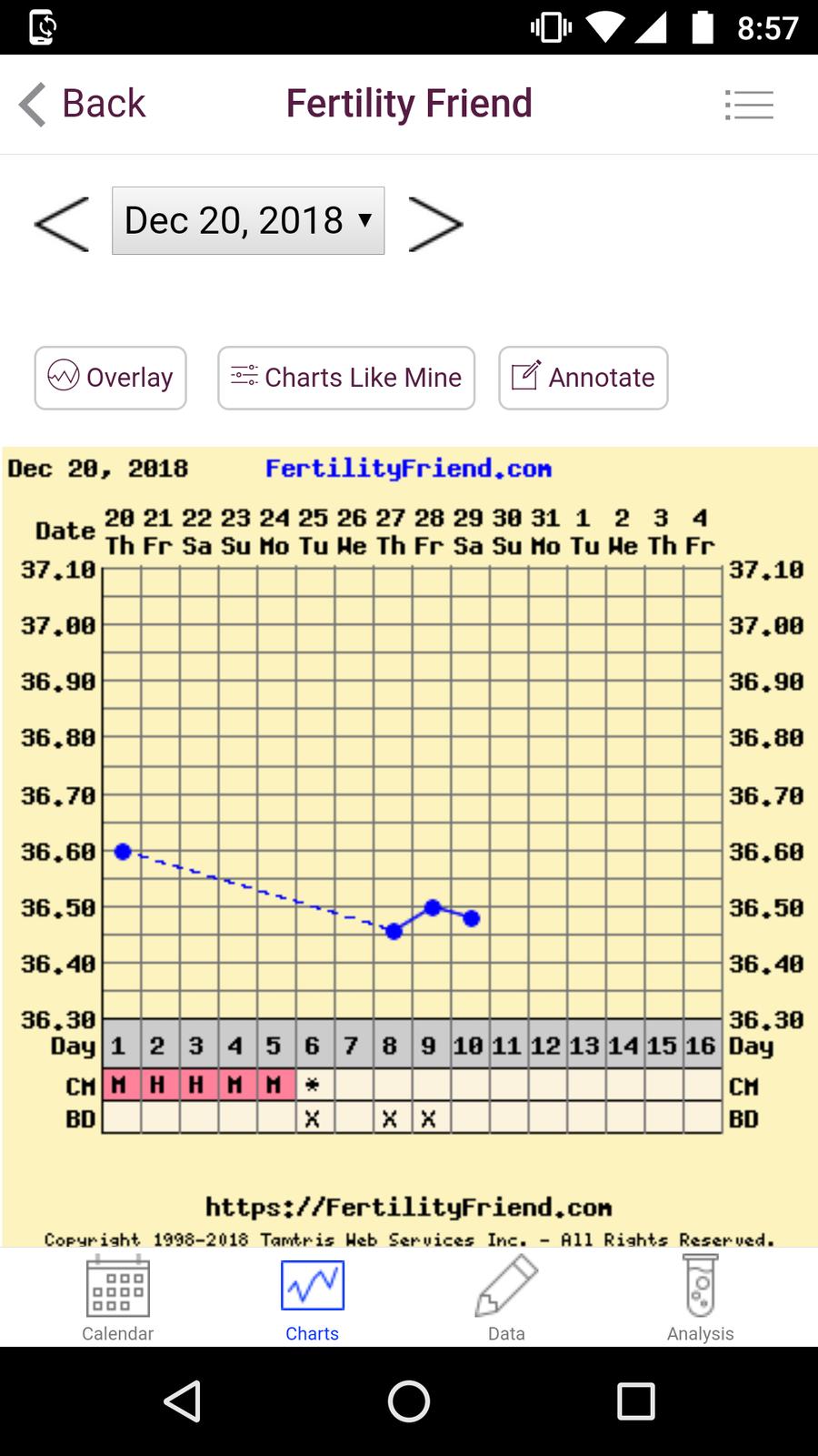 Ahojte zienky pridavam aj ja svoj graf snazime sa uz cca 2 roky mam pco ale pred rokom sa nam aj zadarilo no zial MA odvtedy je moj cyklus uplne rozhadzany a bez liekov vobec neovulujem. Tento mesiac sme zacali navstevovat car a 19. som podstupila IUI tak s malickou dusickou cakam ci ta teplota nepadne 🙂