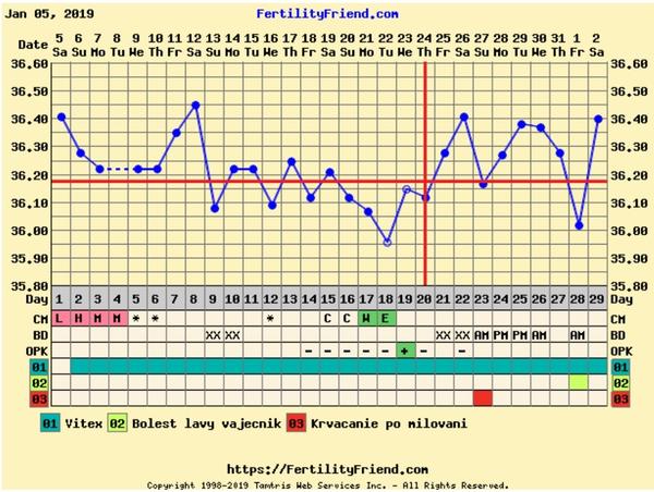 Tento cyklus je nejaky divny. Ani neviem ci uz bola ovu podla teplot. Ale podla hlienu mozno aj hej, lebo uz druhy den mam husty biely kremovy. Aj som mala stresove obdobie posledne 3 dni, v noci som sa casto budila, aj posledne teploty som merala o pol hod skor nez zvycajne, ale citala som ze stres moze vyrazne zvysit bazalnu teplotu, tak potom neviem.