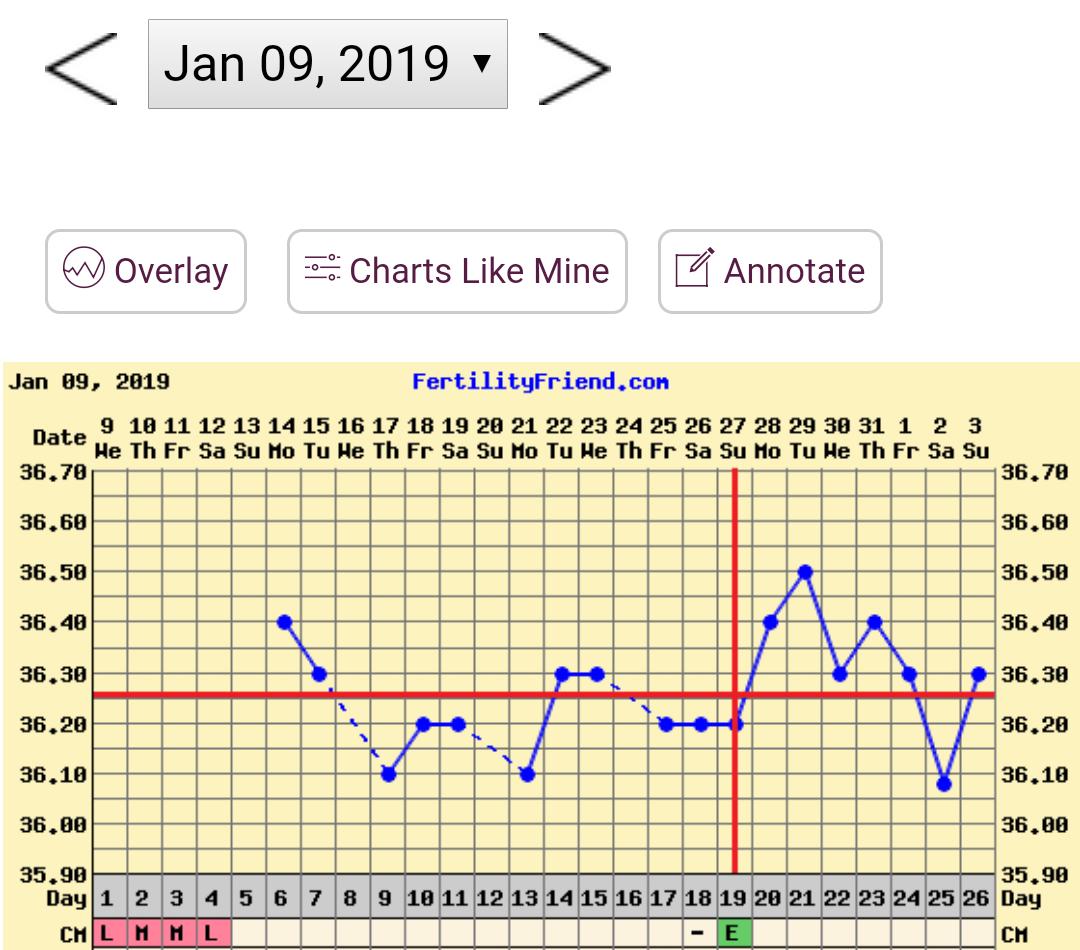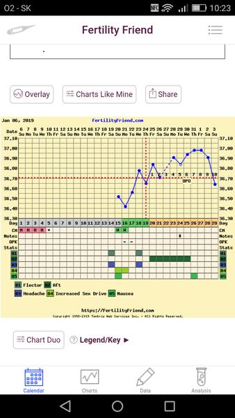 @cica1650 ak este 2 dni budeš mat vyššiu teplotu ako 36,9 tak ovu vychadza na 2 feb. Pravidlo 3 dni vyššich teplot ako v 6 predchádzajúcich dňoch. Teploty v case ms si vymaz. Budu ti umelo navysovat