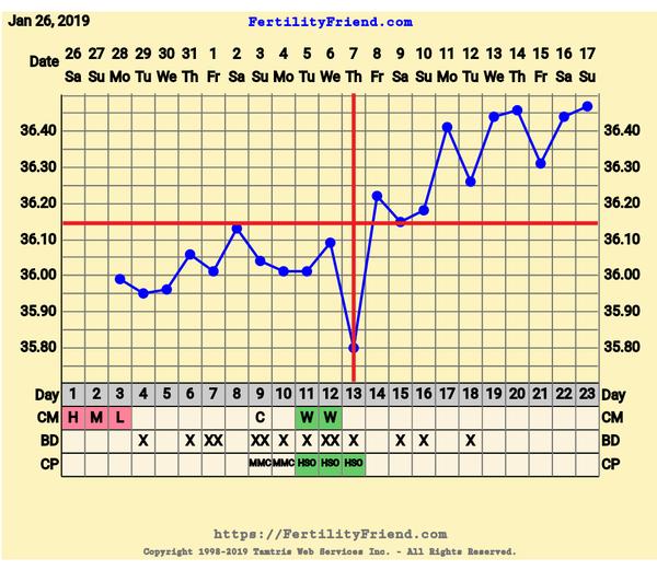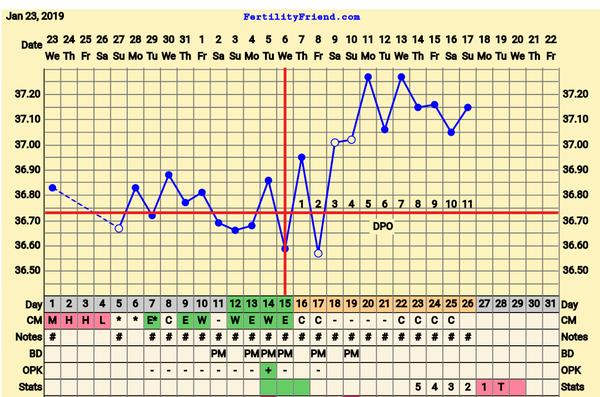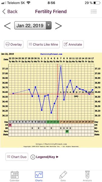 Ahojte dievčatá, pridám sa k Vám, ak môžem po dlhoooom čase... Tento cyklus som začala po asi 2 rokoch znova merať, síce digitálnym a v ústach, ale aspoň niečo... Nakoľko mal mm zdravotné problémy, nedarilo sa nám druhé malinké, no už by malo byť všetko v poriadku, tak začíname odznova a chceme k našej už 11 ročnej súrodenca 🤗... Som 38 DC, cykly 32-36... Včera ma až začali prsia bolieť, čo zvykne tak 7-10 dní pred MS, tak v kútiku duše dúfam, že sa mohlo konečne zadariť, dnes ráno som spravila test, ale negatívny, no graf vizerá takto, počkám ešte a v utorok urobím znova test