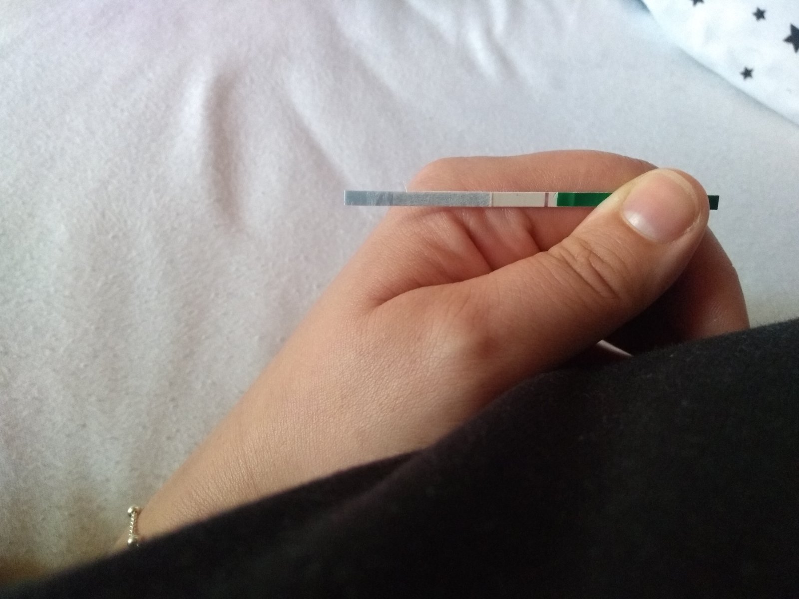 Tak neviem... Urobila som test, ale mám pocit, že ja vidím na všetkých testoch vždy tie kanáliky... Už som aj zmenila značku testov, aby som nemala tie čo mi vyšli pozitívne kedysi (aby som nevedela kde má byť čiarka) a aj tak tam vždy nejakého ducha vidím... Lepšie sa mi to nedalo odfotiť.. akosi mi to nechcelo zaostriť v tom šere.
