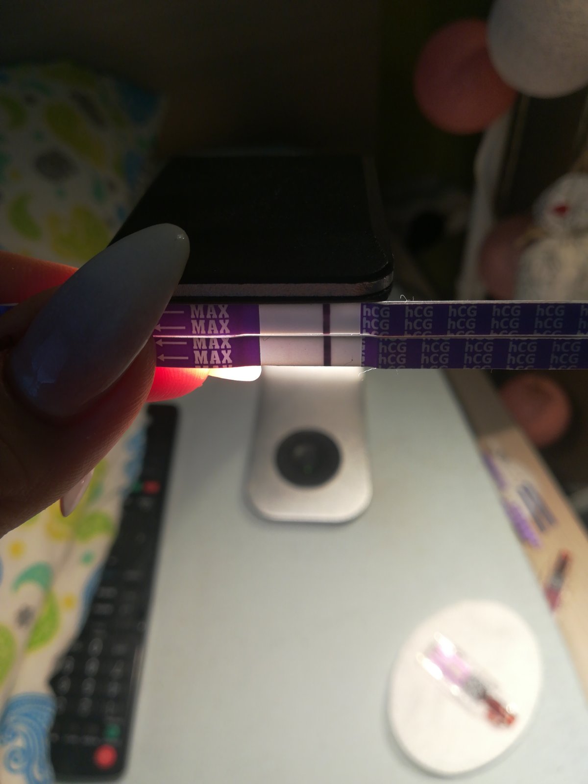 @sparkling aj 9 dpo ti už môže ukázať...ja mám doma všetky možné testy...a aj klasický aj digitálny clear blue... digitálny použijem až keď si budem istá že to vyšlo... je príliš drahý 😁...ja nechápem ako môže test takto zareagovať... takýto aký je podsvietený bol hneď po namočení aj live...a z toho istého moču ďalšie dva testy biele...som z toho jeleň