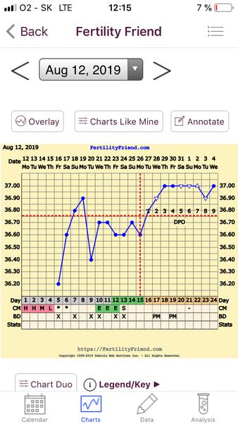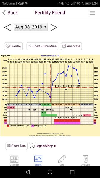 Tak baby ako ste na tom s teplotou. Ja mam stagnujucu 36.96 ako vcera, 12dpo a test biely. Uz ma zacina pobolievat podbrusko tak asi cez vikend ma navštívi milostivá...