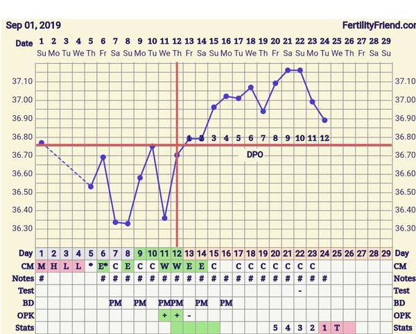 @monu66 to že to bolo tak 12-13dni pred začiatkom menstruacie ... no uvidíme... skúsim budúcu nedeľu otestovať či sa podarilo a keď nie tak začnem s meranim BT....