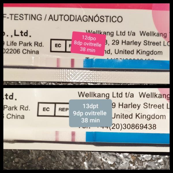 Testy robim len rano, aby som sa vyhla variabilitám počas dňa. A v piatok mi jedna kocka dala link aby som si vypočítala zvyšné hcg v krvy, tak hoc som zacala plny hodnotu, do som si pichala počas 16 dní, tak hodnota hcg pre ovitrelle bola v rozmedzí 20-60 hcg a ja som v piatok uz mala hcg 554. Inak dnesny test prekvapil najsilnejsi