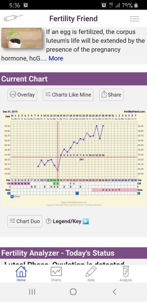 @dorinecka45 Graf vyzerá dobre. Pokiaľ bude aj zajtra teplota vyššia ,tak už aj graf by ti mal vyhodnotiť ovu podľa mňa na 17DC. A kedy príde MS je ťažko povedať. Každá žena má inú dĺžku luteálnej fázy. To si odsleduješ tento mesiac,že po akej dlhej dobe od ovu príde MS a na ďalší mesiac už budeš vedieť,kedy ju asi čakať.Dĺžka luteálnej fázy sa zvyčajne nemení