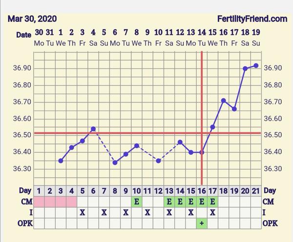 Moj graf dnes. Ovulka uz je oznacena a teraz uz len cakat a modlit sa 🙏 ☺