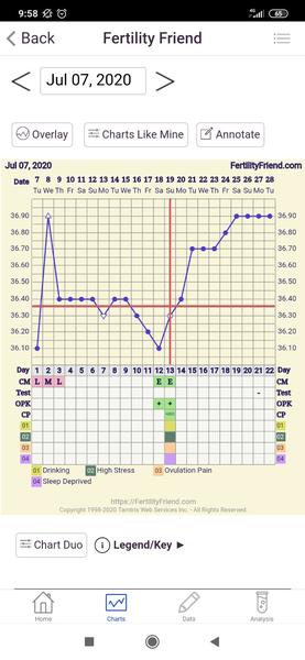 Ahojte. Prosím pozriete sa mi na moj graf? Ja keď vidím tie vaše, tak mi moj príde veľmi cudny. Nemám takmer žiadne teplotné výkyvy. 7dc bola teplota meraná o hodinu skôr, čiže by tiež bola 36,4. Všetko skoro jednej línii, pokles pred ovu a potom sa opat drzia teploty skoro v línii, žiadne výkyvy, skoky, vrchy. Je to v poriadku?