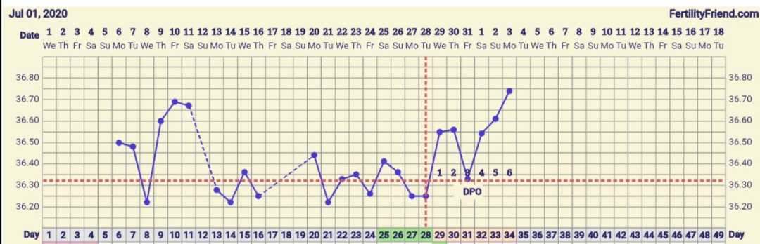 Ja dnes takto 😊 Konecne teplota stupla a vyzera poovulacne, takze uvidime zajtra, ci ovulacia nebola az na 20DC