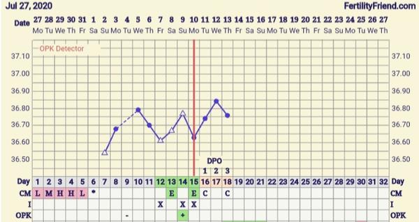 @123alena123 ja by som povedala, ze ovu bola o 3 dni neskor a teda si 14DPO. Graf stale pekny, drzime palceky.