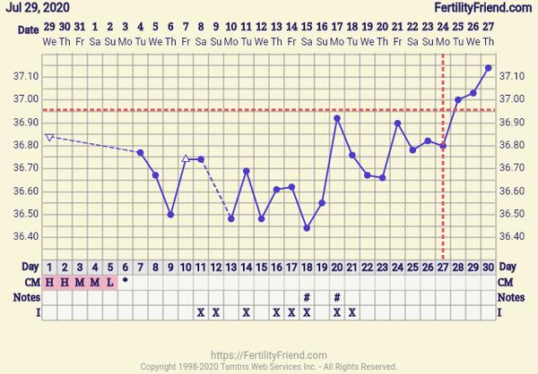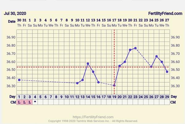 Ahojte baby, idem si k vám po radu opäť😊 čo myslíte prebrehla ovulka tak ako mi ju vyznačil graf?bo ja mám pocit že prebrehla skôr toho 18DC.. avšak od 20DC som mala zápal močových ciest a od 24DC beriem antibiotiká... takže asi to bude ťažko vyhodnotilne...bo ak nastala až 27DC je to premrhana ovulka 😔