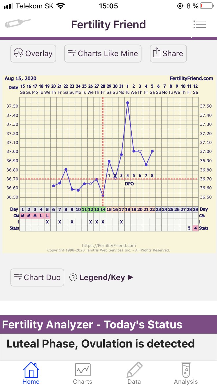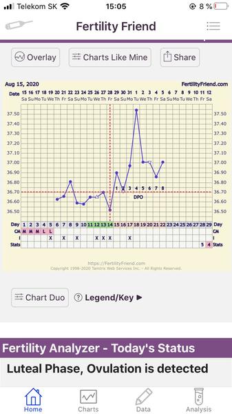 @0507 snazim sa nezblaznit 😁 dnes som 9den po inseminacii teplota 36,93 ale uzivam duphaston a estrofem....snazim sa mysliet pozitivne,ale...do stvrtku daleko 🙈 ...ty mas krasny graf 😍!🙏 mohli by sme tento mesiac trhnut rekord v pocte // v nasej skupinke 😉😉😘🌷